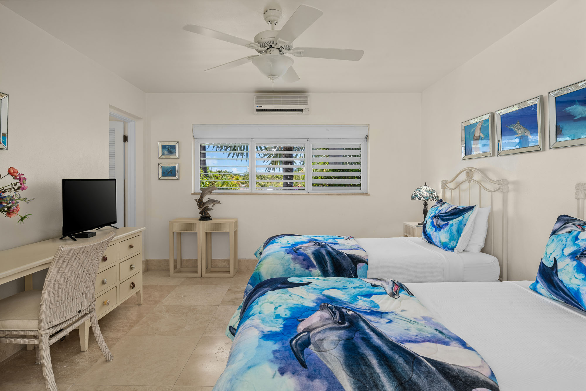 Dolphin Room: Beach level, king size or twin beds, private en-suite bathroom with shower and TV.